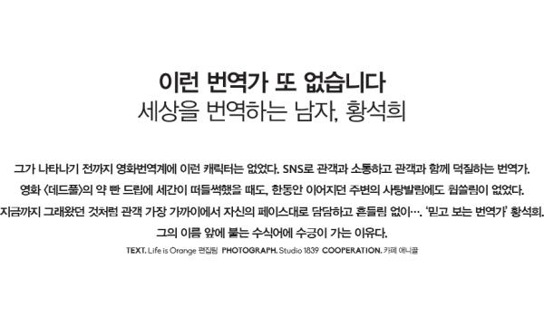 그가 나타나기 전까지 영화번역계에 이런 캐릭터는 없었다. SNS로 관객과 소통하고 관객과 함께 덕질하는 번역가.