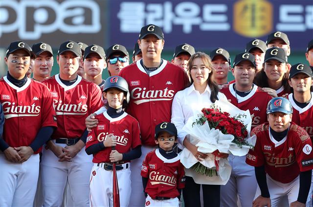 마지막으로 남들처럼 여름방학에 해운대 해수욕장에도 데리고 가지 못하는 못난 아빠를 위해 늘 웃는 얼굴로 힘내라고 불러주는 예서와 예승이, 또 독박 육아도 모자라 1년에 절반도 함께하지 못하는 남편을 위해 너무 많은 희생을 해주는 사랑하는 아내 혜정아 고맙다. 그리고 하늘에 계시는 사랑하는 할머니, 늘 걱정하셨던 손자 대호가 이렇게 많은 사람들 앞에서 사랑을 받고 박수를 받으면서 떠나는 선수가 됐습니다. 오늘 제일 많이 생각이 나고 보고싶습니다.