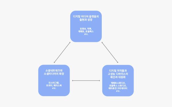 단순한 사용자를 넘어 직접 디자인하고 창작하는 크리에이터들이 만들어 내는 가치가 확장되면서 경제적 지속가능성을 만들어 내는 것이 바로 ‘크리에이터 이코노미(Creator Economy)’다. 이미 유튜브나 틱톡 같은 플랫폼에서는 그들의 참여와 창작이 만들어내는 가치가 엄청난 규모로 성장했으며, 로블록스나 제페토 같은 메타버스에서도 유사하게 목격되고 있다. 창작할 수 있는 디지털 미디어 플랫폼의 등장, 세계 곳곳에 확산시킬 수 있는 소셜네트워크의 확장, 손쉽게 다양한 창작이 가능한 저작도구와 스마트 디바이스의 대중화가 만들어 낸 결과이자 거대한 메가트렌드다.